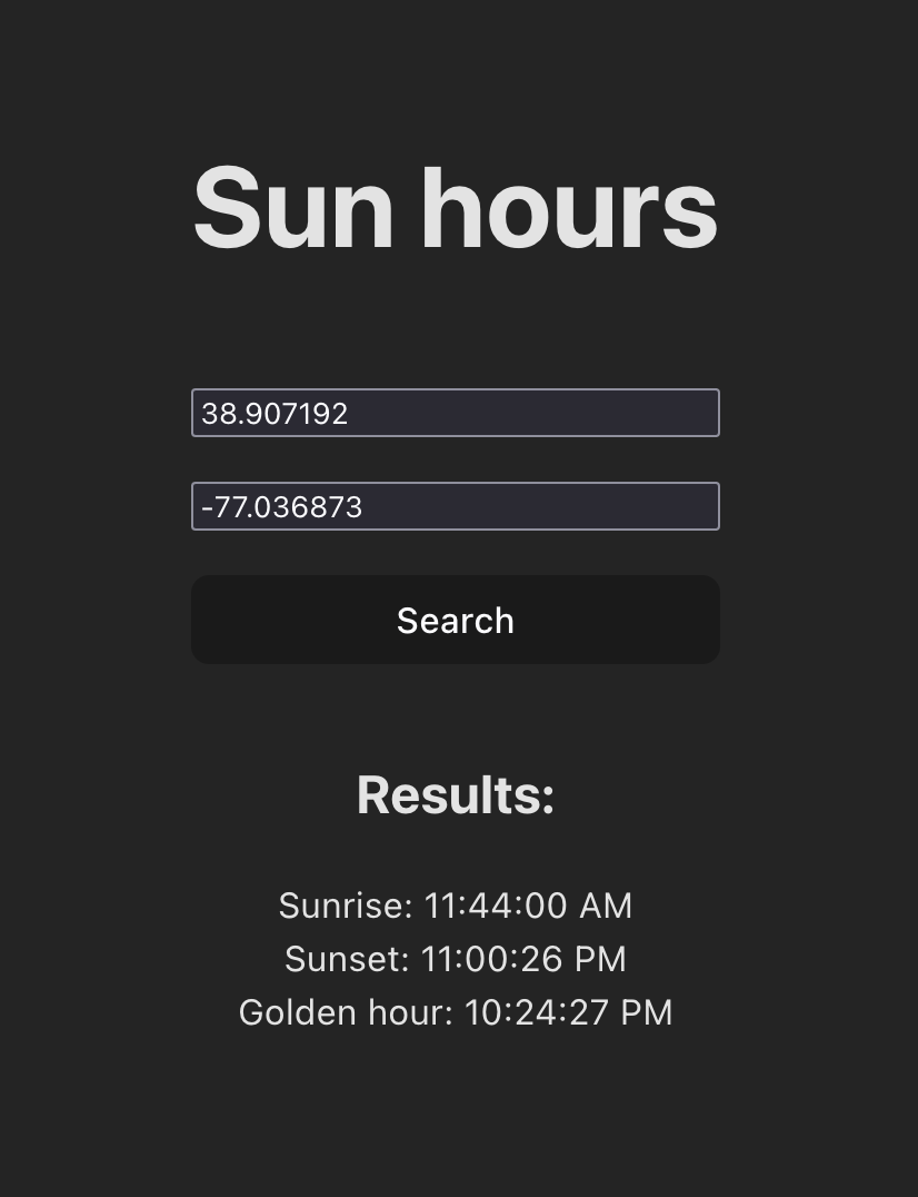 I have built a simple Vue app which fetches the data about sunset and sunrise using sunsetsunrise API.